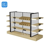 Prateleiras De Madeira Painel De Vidro Gôndola Prateleiras Exposição Cosmética Armário Dupla Face Multi Tier Armazenamento Gavetas