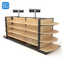 Racks De Exibição De Varejo De Madeira Black Metal Frame Dupla Face Gôndola Prateleiras Multi Tier Commercial Shop Luminárias De Armazenamento